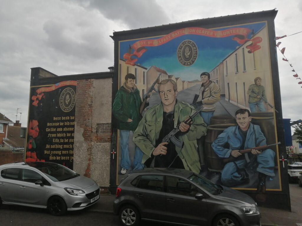 Heute war es zur Abwechslung einmal halbwegs schön und angenehm warm. West-Belfast war angesagt, fußläufig – wie alles in dieser Stadt – leicht zu erreichen. Zuerst ging es zum „Crumlin Road Gaol“, einem ehemaligen Gefängnis. „The Crum“ wurde 1846 eröffnet und im Jahr 1996 geschlossen. Ursprünglich für rund 500 Gefangene gebaut, waren aber meist deutlich mehr Personen inhaftiert. Zwischen 1901 und 1961 wurden innerhalb der Mauern dieses Gebäudes 17 Gefangene durch den Strang hingerichtet. Gruselig, wenn man durch das Gebäude streift, die einzelnen Zellen sieht, Kommentare ehemaliger Insassen hört und letztendlich im Exekutionsraum ankommt. Heute dient das Gefängnis eben als Touristenattraktion, in dem auch Konzerte stattfinden. Danach schlenderten wir durch die Wohnsiedlungen der Falls-Road, wo überwiegend katholische, republikanisch (pro irisch) eingestellte Menschen leben. In unmittelbarer Nähe befindet sich das Shankhill-Viertel, das protestantisch und unionistisch (pro britisch) geprägt ist. Die Zäune, die diese beiden Viertel voneinander trennen, nennt man „peace lines“ und sind immer noch zu sehen. In der Hochphase des nordirischen Bürgerkrieges, der sogenannten „Troubles“, wurde die britische Armee in das Falls-Viertel entsandt. Anschläge der aus diesem Konflikt entstandenen IRA waren die Folge und die Spirale der Gewalt begann sich zu drehen. Zahlreiche anklagende Bilder und Sprüche auf Hauswänden und Zäunen sprechen Bände davon. Belfast pur! Nach einem kurzen Abstecher bei der Queens-University und in der „Linen Hall Library“ haben wir im Pub „Fountain Lane“ sehr lecker gespeist. Auch heute hat uns Belfast wieder mit sehr schönen Eindrücken überrascht. Jetzt haben wir aber genug gesehen und freuen uns auf Landschaft pur an der Nordküste!