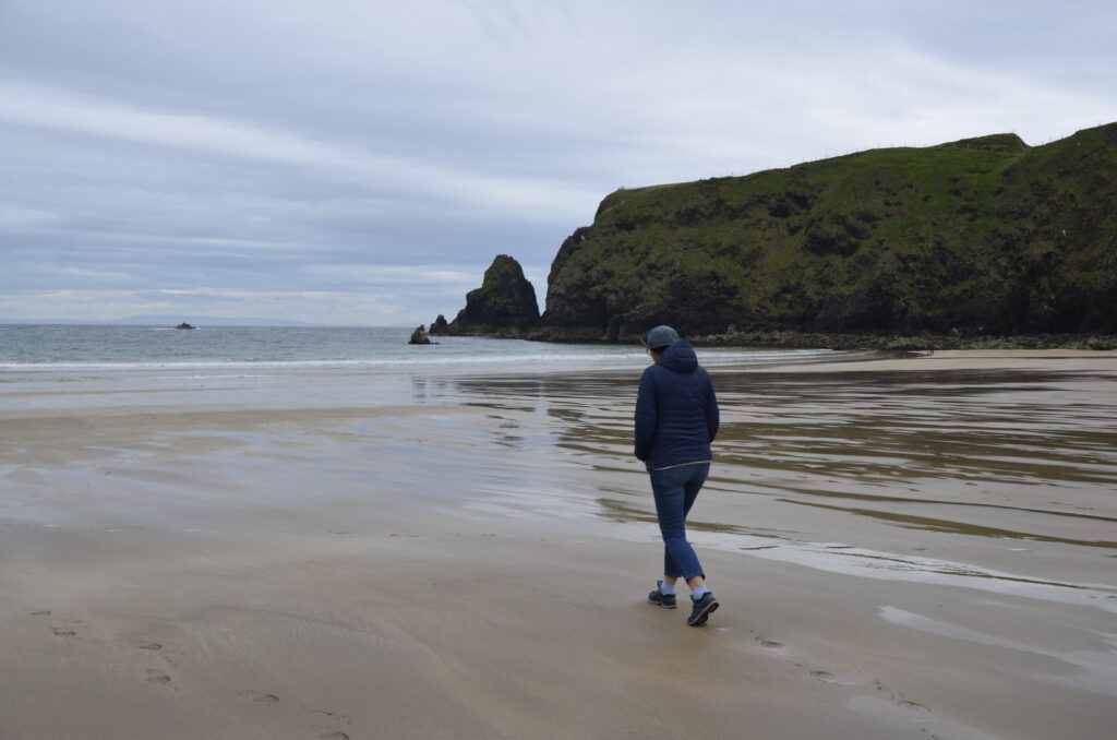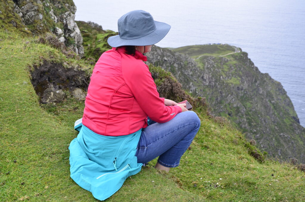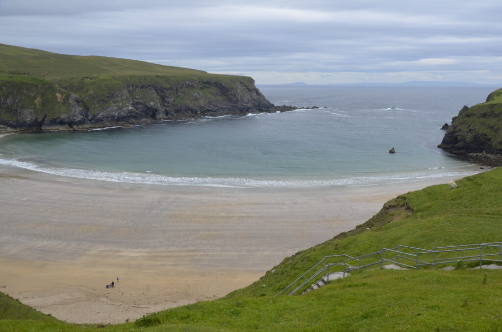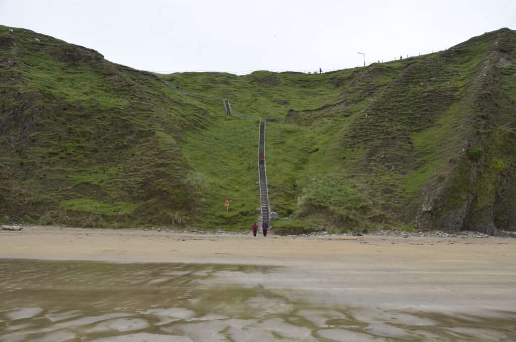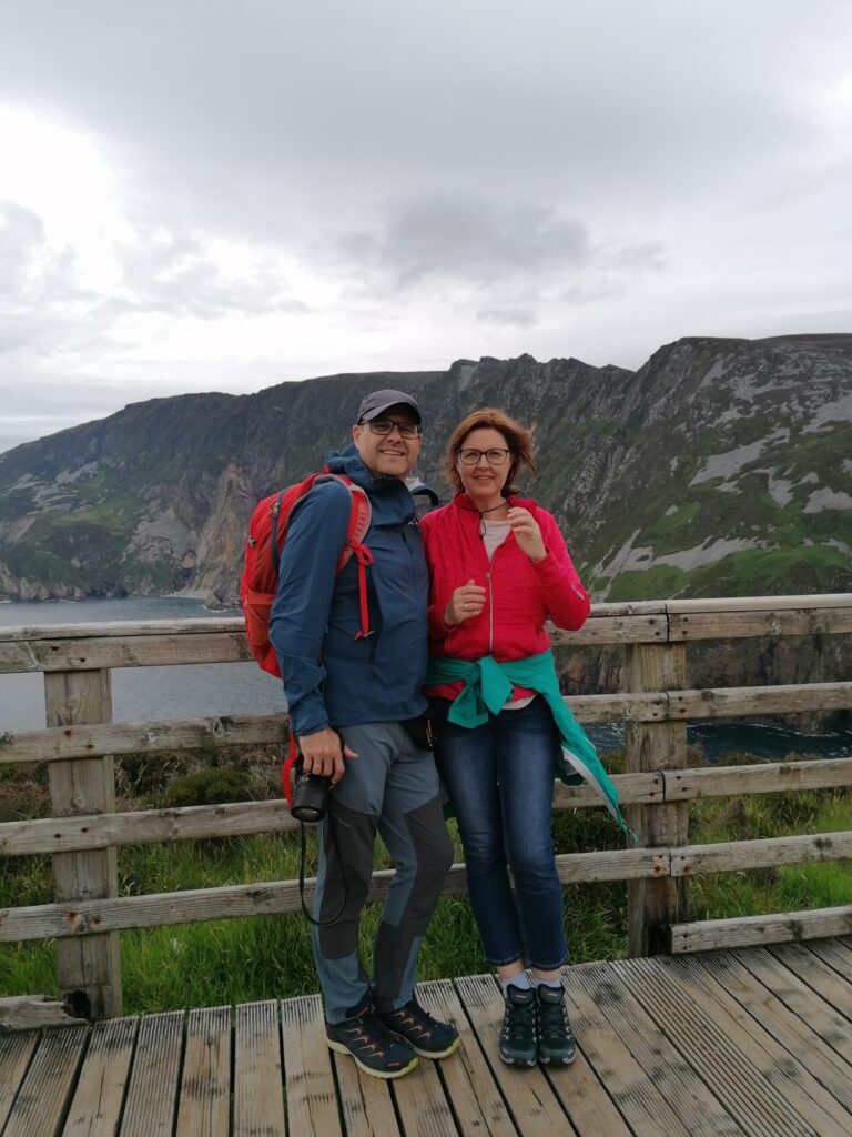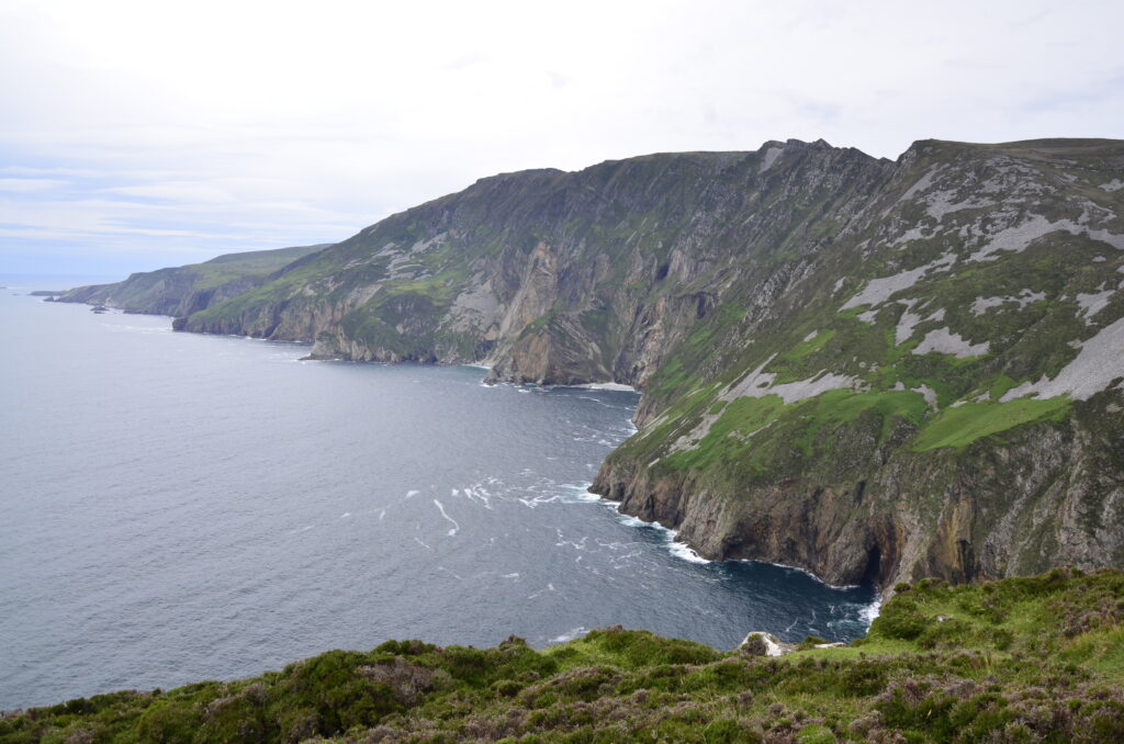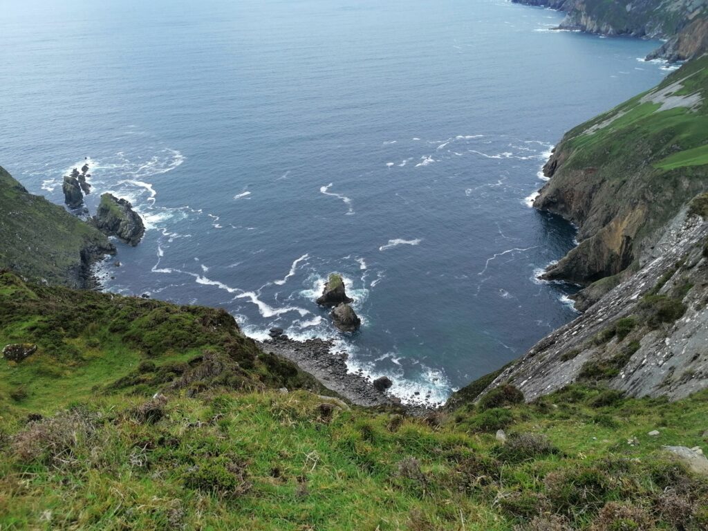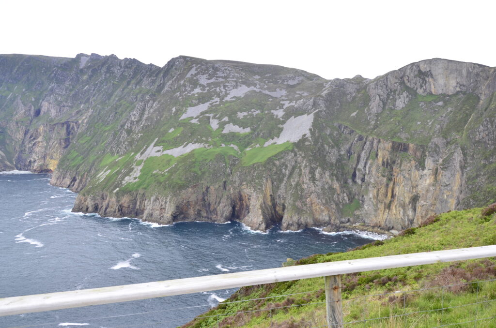 Dicke dunkle Regenwolken haben uns heute den Morgen „versüßt“. Nach einem guten Frühstück und einem Tratscherl mit unserer Gastgeberin Roisin haben wir uns auf den Weg Richtung Westküste gemacht. Unsere heutiges Ziel waren die Klippen von „Slieve League“ im County Donegal. Sie zählen mit einer Höhe von 600 Metern zu den höchsten in Europa. Als Anreiseweg haben wir den „Wild Atlantic Way“ auserkoren, eine Küstenstraße entlang der Westküste Irlands mit einer Gesamtlänge von rund 2.500 Kilometern. Und „Wild“ trifft es ziemlich genau. Die sich durch kleine Orte, Buchten und Pässe windende, teilweise beängstigend enge und vereinzelt auch steile „Straße“ schreit nach Konzentration, damit man nicht mit dem Auto in der nächsten Schafherde landet. Vor jeder Kurve steigt das Adrenalin. Eine wirklich atemberaubende Fahrt durch eine wunderbare Landschaft, die aber durch immer wieder einsetzende Regenschauer nicht unbedingt einfacher wurde. Aber nach Regen kommt Sonnenschein und bei unserem Zwischenstopp am Silver Strand in „Malin Beg“ war es dann auch so. Ein schöner aber zugiger Flecken Erde und so habe ich die Badehose rasch wieder eingepackt. Nach einem kurzen Strandspaziergang ging es weiter nach Slieve League. Wieder haben uns dunkle Regenwolken verfolgt, aber pünktlich am Ziel haben sie sich verdrückt und es wurde sogar hell und freundlich. Wir sind dann vom Parkplatz aus rund 2 Stunden bergauf entlang der Klippen gewandert. Die Ausblicke sind fantastisch und man glaubt, am Rand der Welt zu stehen, so steil geht es abwärts. Man hört die Brandung des tosenden Atlantik sogar noch hier oben! Nach einem leckeren Abendessen in der urigen Kneipe „The Rusty Mackerel“ ging es – vorbei am Ben Bulben, einem 527 Meter hohen Tafelberg – zu unserer nächsten Gastgeberin Karen, einem B&B direkt an der Atlantikküste in Clooghan. Nach einer kurzen abendlichen Klippenwanderung war dann Schluss.