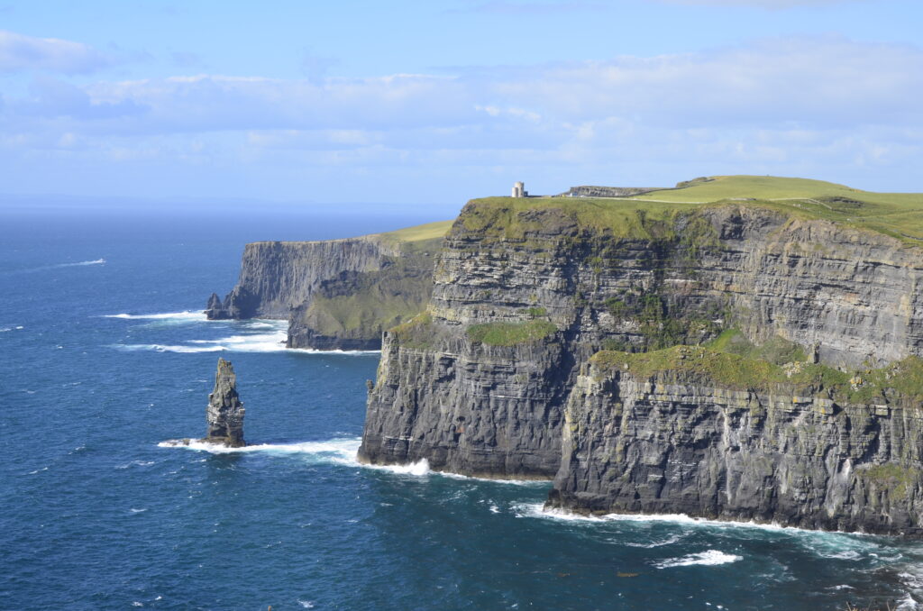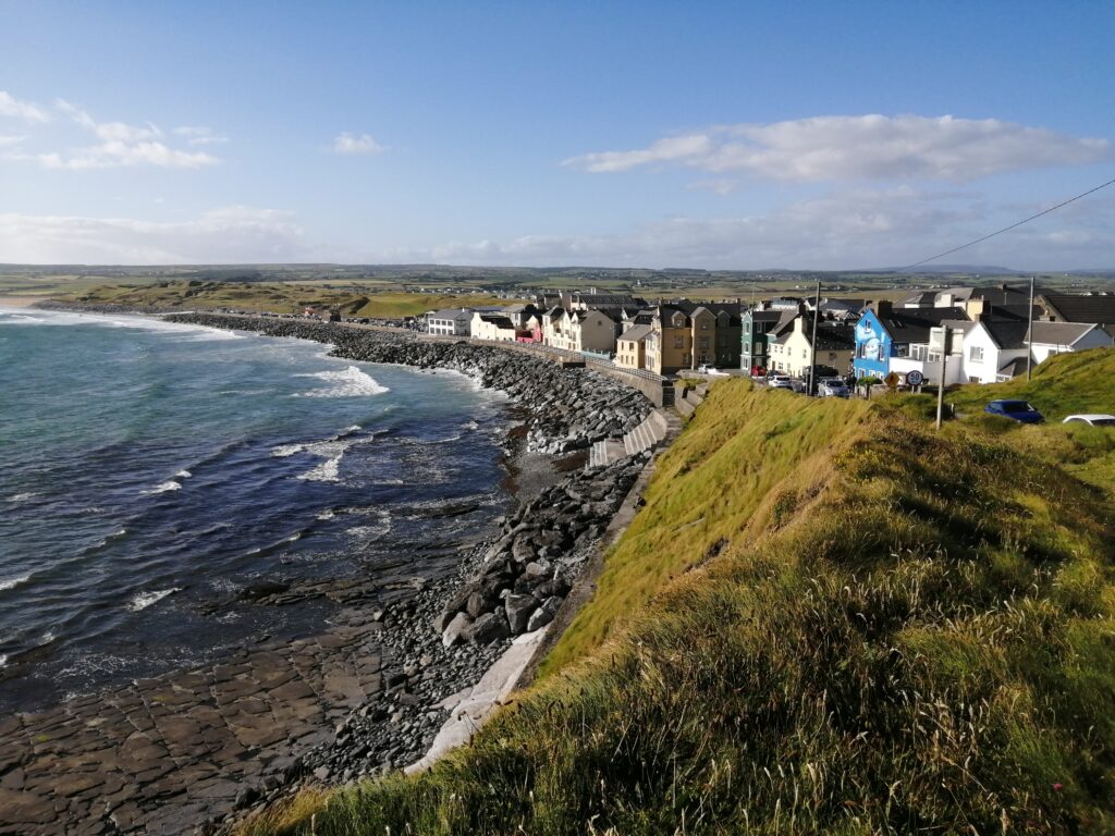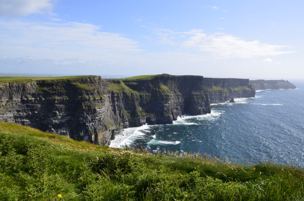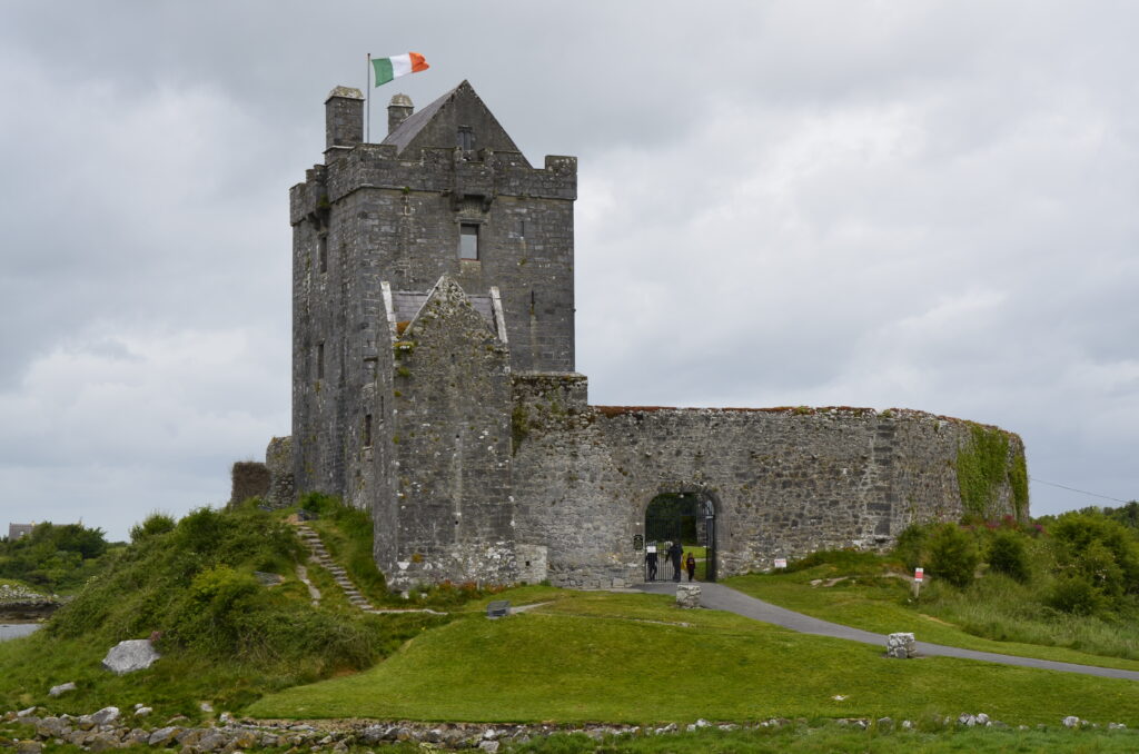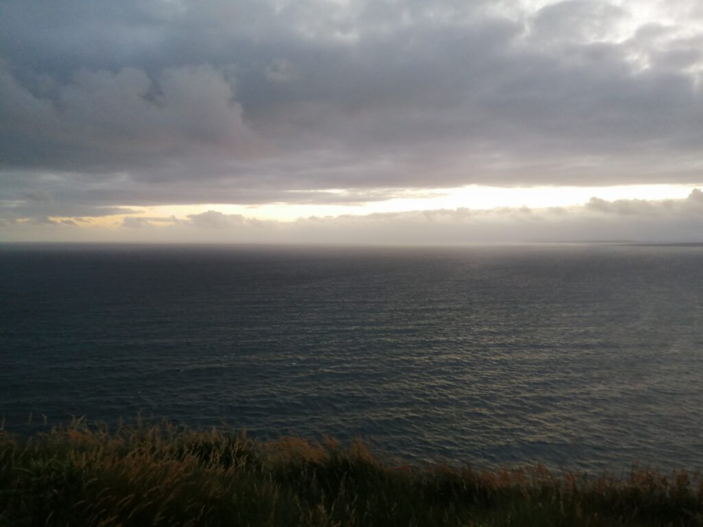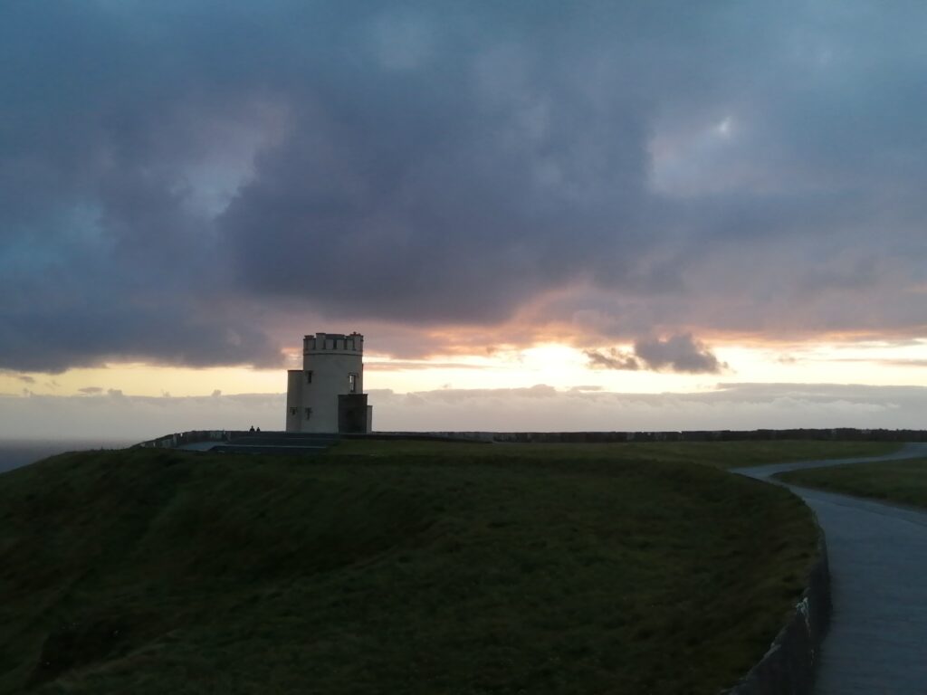 Unser heutiges Fahrpensum war nicht so hoch. Wir waren wieder am Wild-Atlantic-Way unterwegs und aufgrund der kurvigen Streckenführung braucht man auch für wenige Kilometer trotzdem viel Zeit. Der Weg führte uns von Galway Richtung Kinvara, wo unser erster Zwischenstopp das „Dunguaire Castle“ war. Diese Burg wurde im Jahr 1520 erbaut und im Jahr 1924 restauriert. Man kann die Innenräume besichtigen und hat ganz oben einen schönen Ausblick über die Bucht von Galway. Ist nicht der ganz große Knüller, war aber ganz nett. Danach ging es weiter durch die ganz eigene Landschaft des „Burren Nationalpark“. Er ist 15 km² groß und bekannt für seine ausgedehnten Felslandschaften. Die Suche nach diesen war aber sehr herausfordernd. Wir sind kreuz und quer durch die engsten Feld- und Wiesenwege in der Pampa gefahren, bis wir letztendlich beim „Giants Playground“ gelandet sind, wo wir diese Felsformationen – mit einer Handvoll anderer Hobbygeologen – bewundern konnten. Gisi war ganz hin und weg und konnte sich kaum davon trennen. Naja, so toll war das Ganze auch wieder nicht und es ging weiter zu unserer Unterkunft! Sofort nach dem „Einchecken“ bei unseren privaten Gastgebern sind wir wieder los zum Höhepunkt des heutigen Tages, den Cliffs of Moher. Das Wetter war perfekt, was bei den Cliffs oft zum Lotteriespiel wird. Die Klippen ragen an vielen Stellen beinahe senkrecht aus dem Atlantik, erstrecken sich über eine Länge von mehr als 8 Kilometern und erreichen am südlichen Ende eine Höhe von 120 und am Nordende von 214 Metern. Und sie sind wirklich atemberaubend schön. Man wandert am Rande der Klippen auf markierten Wegen dahin – immer mit der höflichen Aufforderung, sich nicht in den Abgrund zu stürzen – und hat wunderbare Ausblicke auf die Steilklippen und den endlos wirkenden Atlantik. Das einzige, was man hört, ist seine Brandung und das laute Geschrei der Papageientaucher und Möwen. An manchen Stellen gibt es extreme Winde und man muss aufpassen, dass man nicht über die Klippen geweht wird. Abendessen gab es in „Kennys Bar“ in Lahinch, einem kleinen Ort an der Liscannor-Bay, direkt am Atlantik mit einem herrlichen Strand. Gegen 22:00 Uhr sind wir noch einmal losgezogen, um uns den Sonnenuntergang bei den Cliffs anzusehen. Leider war er aufgrund aufziehender Wolken nicht so besonders schön.