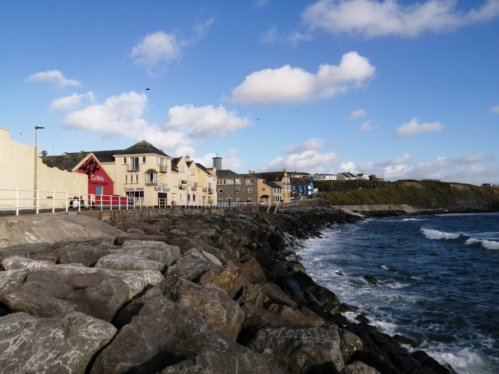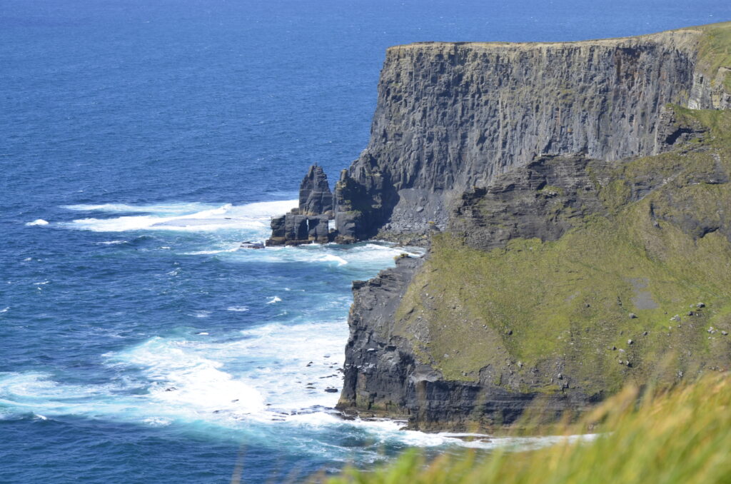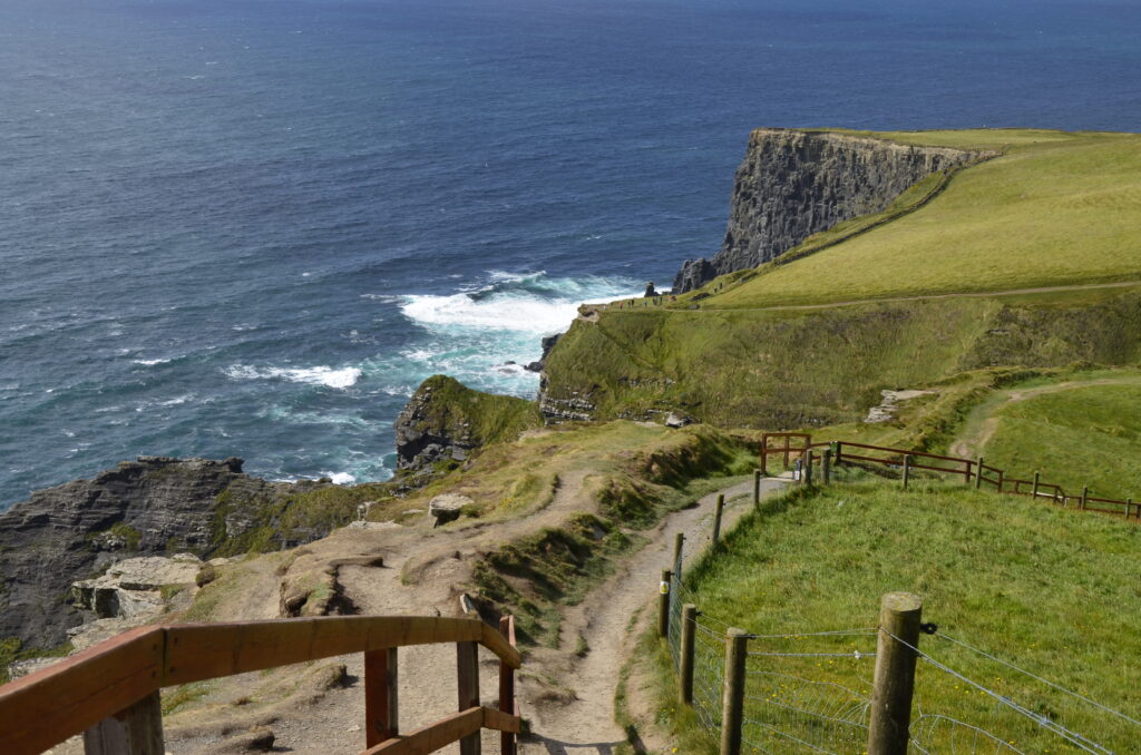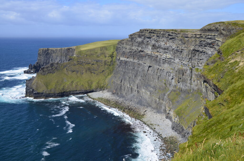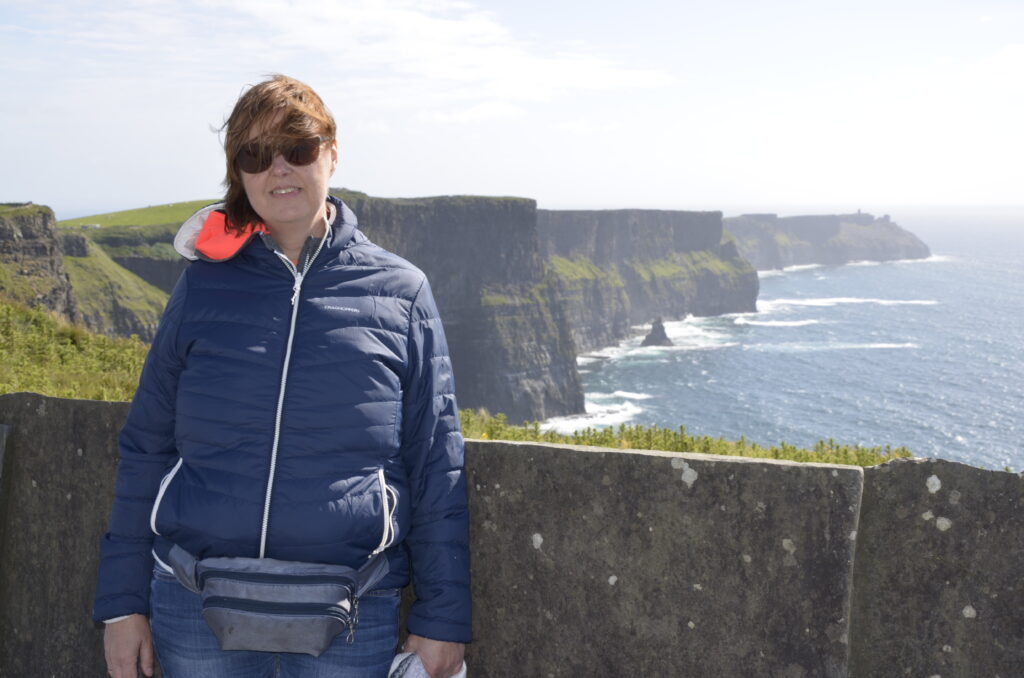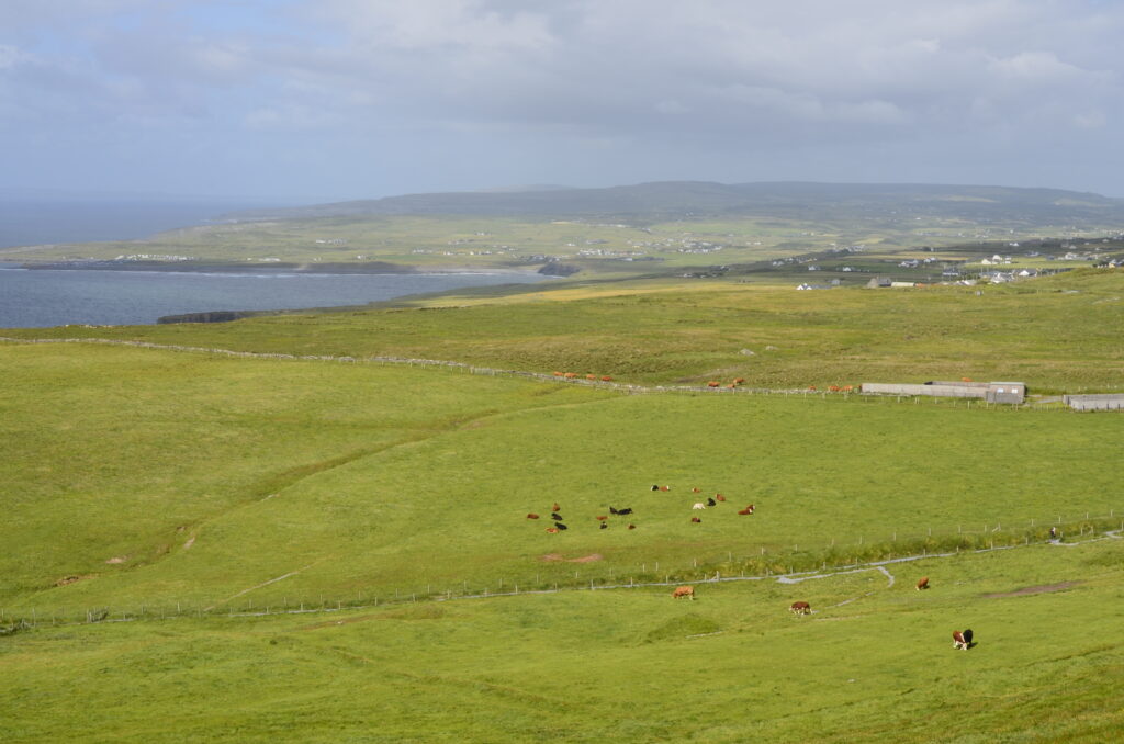 Unser heutiges Fahrpensum war nicht so hoch. Wir waren wieder am Wild-Atlantic-Way unterwegs und aufgrund der kurvigen Streckenführung braucht man auch für wenige Kilometer trotzdem viel Zeit. Der Weg führte uns von Galway Richtung Kinvara, wo unser erster Zwischenstopp das „Dunguaire Castle“ war. Diese Burg wurde im Jahr 1520 erbaut und im Jahr 1924 restauriert. Man kann die Innenräume besichtigen und hat ganz oben einen schönen Ausblick über die Bucht von Galway. Ist nicht der ganz große Knüller, war aber ganz nett. Danach ging es weiter durch die ganz eigene Landschaft des „Burren Nationalpark“. Er ist 15 km² groß und bekannt für seine ausgedehnten Felslandschaften. Die Suche nach diesen war aber sehr herausfordernd. Wir sind kreuz und quer durch die engsten Feld- und Wiesenwege in der Pampa gefahren, bis wir letztendlich beim „Giants Playground“ gelandet sind, wo wir diese Felsformationen – mit einer Handvoll anderer Hobbygeologen – bewundern konnten. Gisi war ganz hin und weg und konnte sich kaum davon trennen. Naja, so toll war das Ganze auch wieder nicht und es ging weiter zu unserer Unterkunft! Sofort nach dem „Einchecken“ bei unseren privaten Gastgebern sind wir wieder los zum Höhepunkt des heutigen Tages, den Cliffs of Moher. Das Wetter war perfekt, was bei den Cliffs oft zum Lotteriespiel wird. Die Klippen ragen an vielen Stellen beinahe senkrecht aus dem Atlantik, erstrecken sich über eine Länge von mehr als 8 Kilometern und erreichen am südlichen Ende eine Höhe von 120 und am Nordende von 214 Metern. Und sie sind wirklich atemberaubend schön. Man wandert am Rande der Klippen auf markierten Wegen dahin – immer mit der höflichen Aufforderung, sich nicht in den Abgrund zu stürzen – und hat wunderbare Ausblicke auf die Steilklippen und den endlos wirkenden Atlantik. Das einzige, was man hört, ist seine Brandung und das laute Geschrei der Papageientaucher und Möwen. An manchen Stellen gibt es extreme Winde und man muss aufpassen, dass man nicht über die Klippen geweht wird. Abendessen gab es in „Kennys Bar“ in Lahinch, einem kleinen Ort an der Liscannor-Bay, direkt am Atlantik mit einem herrlichen Strand. Gegen 22:00 Uhr sind wir noch einmal losgezogen, um uns den Sonnenuntergang bei den Cliffs anzusehen. Leider war er aufgrund aufziehender Wolken nicht so besonders schön.