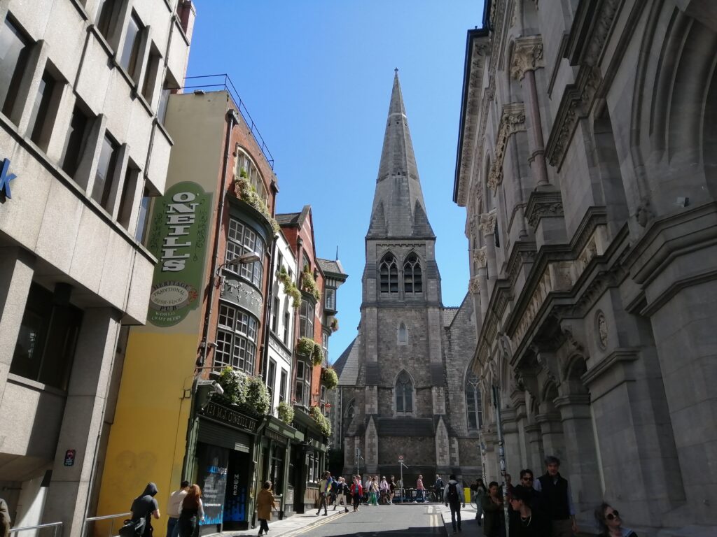 Heute war Sightseeing angesagt. Nachdem unser Ticket noch einen halben Tag gültig war, sind wir mit dem Hop-On-Hop-Off-Bus noch bis zur Station des „Guinness Storehouse“ gefahren. Es handelt sich dabei um eine Touristen-attraktion, die seit der Eröffnung im Jahr 2000 mehr als zwanzig Millionen Besucher empfangen hat. Ja, Bier zieht eben! Das Storehouse erstreckt sich über sieben Stockwerke, in denen die Zutaten des Bieres, die Gründungsgeschichte der Brauerei, die Geschichte der Guinness-Werbung und viele weitere Informationen präsentiert werden. Alles sehr gut und übersichtlich aufgebaut. Kann man – auch wenn einem der Hopfen fremd ist – wirklich empfehlen. Arthur Guinness hat übrigens das Gebäude damals um einen Pappenstiel und auf Grundlage eines 9.000 Jahre langen Pachtvertrages erworben. Kluger Mann! Danach ging es zu Fuß kreuz und quer durch die Stadt. Abendessen gab es im „The Norseman“ und abschließend noch Alkohol und Gesang im „The Auld Dubliner“, einem gemütlichen Pub mitten in Temple-Bar. Unfassbar, was in den einzelnen Pubs abgeht. Als gäbe es kein Morgen, so wird hier getrunken und gesungen. Morgen haben wir noch Zeit für einen Besuch des Trinity-College und dann geht es mit dem Flieger wieder retour nach Hause. Slán Éire – wir werden uns wiedersehen!