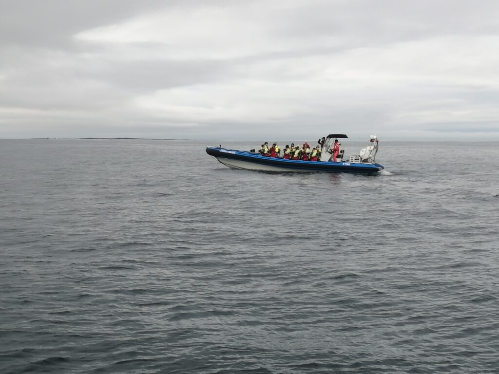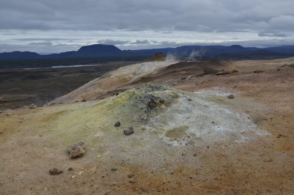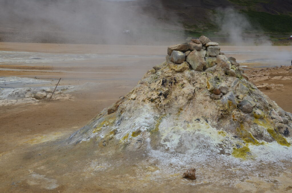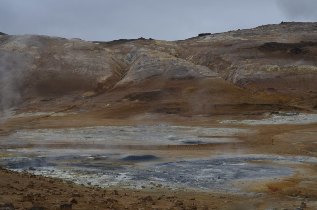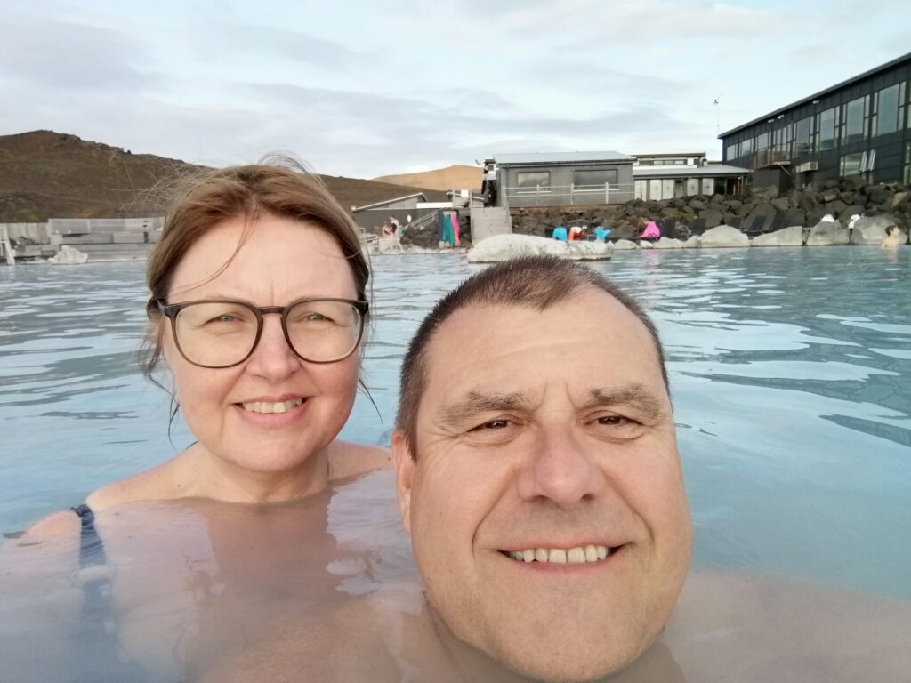 In Húsavík sind wir in einem sehr netten Gistiheimili (mir gefällt das so) untergebracht, dem Guesthouse Arbol. Wie ausgemacht, haben wir pünktlich um 08:00 Uhr das bisher leckerste Frühstück bekommen, sogar am Zimmer serviert. Bereits eine Stunde später ging es mit der Bjössi Sör, einem Eichenboot auf Walbeobachtungsfahrt. Das ursprünglich gebuchte Elektroboot war leider defekt. Das Wetter war perfekt: Windstill, bedeckt und mit angenehmen Temperaturen. Trotzdem warm eingepackt in einen Overall – Ihr kennt ja schon die beiden Teletubbies Dipsy und Po – ging es hinaus in die Skjálfandi Bucht auf die Suche nach Walen, ähnlich der Nadel im Heuhaufen. Einzig die Erfahrung des Kapitäns, Sonarunterstützung und ein Blick auf die anderen Boote können dabei helfen. Delphine und jede Menge Quallen waren vorerst allerdings die einzige Ausbeute. Nach rund 1,5 Stunden bekamen wir dann aber einen Buckelwal zu Gesicht, der friedlich in der Bucht sein Mittagsschläfchen hielt, ab und an unter Wasser verschwand, um prustend und schnaubend an einer anderen Stelle wieder aufzutauchen. Die Passagiere sausten von Steuerbord nach Backbord und wieder zurück, je nachdem, wo er sich gerade befand. Für die Crew sicher ein immer wieder lustig anzusehendes Schauspiel. Auf der Rückfahrt tauchte völlig unerwartet noch ein Minkwal auf, den wir aber mangels Zeit nicht mehr weiter verfolgen konnten. Nach dieser Tour sind wir in Richtung des Mückensees Mývatn gefahren. Und der wird seinem Namen mehr als gerecht: Beim Verlassen des Autos ist man gefühlt von Trilliarden an Zuckmücken umschwärmt, in wahrsten Sinne des Wortes zum Auszucken. Kein Sinnesorgan wird von diesen Biestern ausgelassen. Rasch ab in den nächsten Supermarkt und ein Fliegennetz besorgt, damit ging es einigermaßen. Wir haben dann zu Fuß die Solfataren (das sind Dampfaustrittsstellen von vulkanisch aktiven Gebieten) von Námaskarð im Geothermalgebiet Hverir erkundet. Schwefel und andere Mineralien haben die Landschaft in eine gelb, rot und weiß gefärbte Hexenküche verwandelt, in der es brodelt, dampft und zischt und vor allem gewaltig stinkt. Ein schön anzusehendes aber weniger angenehm zu riechendes Schauspiel. Nach einem kurzen Abstecher zum Viti-Krater im Kraflagebiet und einem kleinen Happen zwischendurch sind wir noch zur mit heißem Wasser gefüllten Grjotagjá-Spalte gefahren. Hier wurde eine Liebesszene aus „Game of Thrones“ zwischen Jon Snow und Ygritte gedreht. Aufgewühlt von dieser Romantik haben wir uns kurzerhand auf den Weg zu den „Myvatn Nature Baths“ gemacht. Ein Onlineticket war schnell gebucht und schon kuschelten wir in diesem lagunenähnlichen Freibad mit milchig blauem, mineralhaltigem Wasser aus natürlichen heißen Quellen. Das war der krönende Abschluss des heutigen Tages und Entspannung pur. Morgen verlassen wir Húsavík und machen uns auf den Weg Richtung Westen. Ein weiterer Wasserfall und zur Abwechslung eine Stadtbesichtigung – geht wirklich in Island, wenn auch nicht oft – stehen auf dem Programm. Allt annað á morgun!