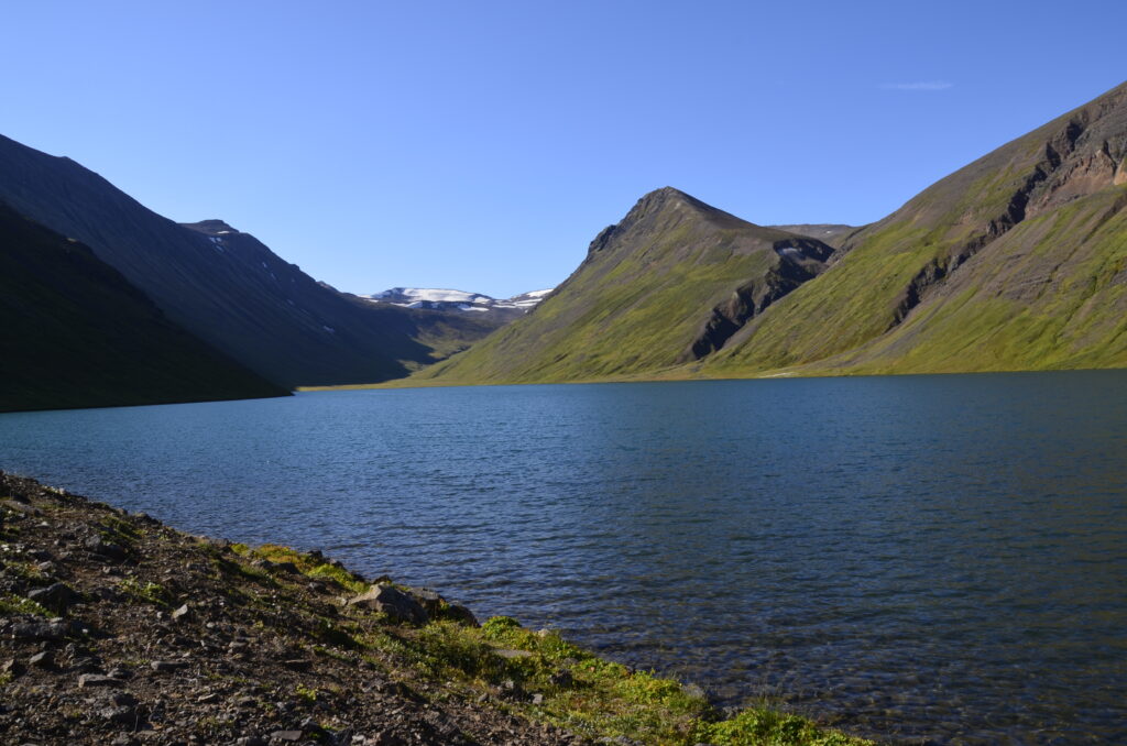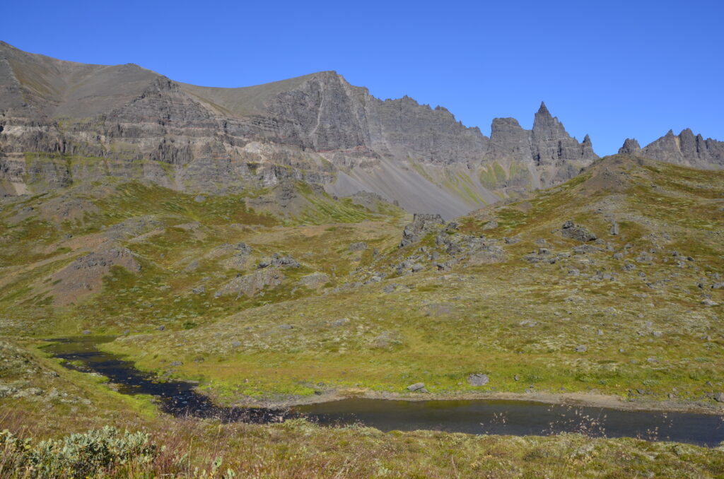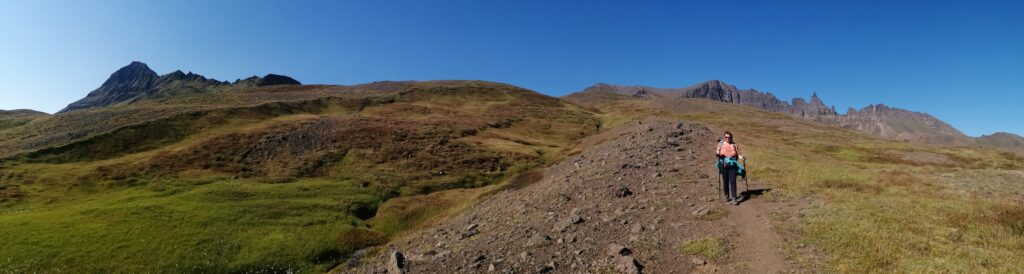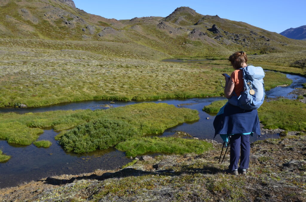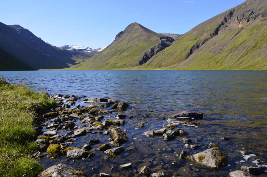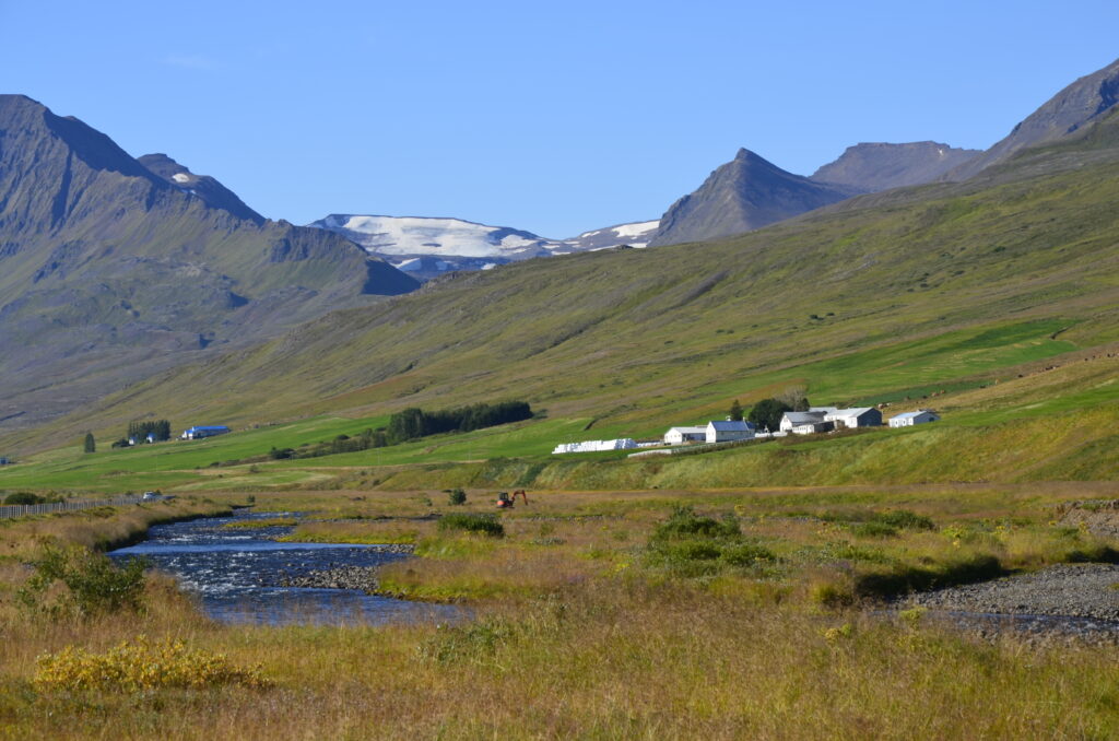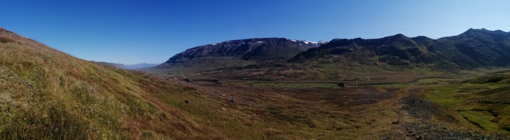 liegt auf dem Rücken der Pferde, so sagt man zumindest. Ein Ausritt mit Islandponys am späteren Nachmittag sollte heute unser Highlight werden. Der Tag startete mit strahlend blauem Himmel und einem wunderbaren Frühstück bei unserer Gastgeberin Elisabeth. Gisi erstand vor der Abfahrt noch ein Paar selbstgestrickte Fußwärmer und ein originelles ebenfalls handgefertigtes wollenes Brillenetui. Damit es die Brillengläser immer kuschelig warm haben, sagt sie! Es standen heute nur wenige Fahrkilometer auf dem Programm und somit hatten wir auch genügend Zeit. Hektik ist in Island ohnehin ein Fremdwort, die Insel hat eine sehr entschleunigende Wirkung. Mit einer Wanderung auf den Bergsee Hraunsvatn im Tal Vatnsdalur haben wir diese Entschleunigung fortgesetzt. Ein gut ausgetretener steiniger Pfad führt steil bergauf, vorbei an saftigem Grün und einem wunderbaren Rundumblick auf die umliegenden Berge und nach rund einer Stunde ist der Bergsee auch schon erreicht. Gut, mit dem Spiegelsee in Schladming kann er vielleicht nicht mithalten, aber er ist trotzdem sehr schön anzusehen und die strahlende Sonne sorgte für die passenden Farben. Wir sind bei Temperaturen um 23 Grad ganz schön ins Schwitzen gekommen. Das sind wir eigentlich nicht gewohnt, nehmen wir aber natürlich dankend an. Nach einer kurzen Rast, bedingt durch lästige Mückenangriffe, ging es wieder bergab und mit unserem Geländewagen weiter Richtung Varmahlíð, zum Treffpunkt unseres Reitausfluges. Fünf unerfahrene Reitanfänger lauschten den Erklärungen unseres Guides Smilla aus Hannover und dann ging es auch schon los. Die Tour dauerte rund 1,5 Stunden, es ging bergauf und bergab, vorbei an einem Canyon mit einem schönen Wasserfall und eine Flussdurchquerung war auch dabei. Das letzte Stück legten wir noch im Tölt zurück, einer ganz eigenen flotten Gangart und man muss aufpassen, nicht aus dem Sattel zu rutschen. John Wayne ist ab jetzt mein zweiter Name! Ein tolles Erlebnis und unsere beiden Ponys Bokki und Sailie sind ohnehin ein Hingucker. Danach ging es zu unserer Unterkunft (wieder einmal „in the Middle of Nowhere“) und mit einem Abendessen in Sauðárkrókur, der größten Siedlung der Großgemeinde Skagafjörður mit rund 2.500 Einwohnern, haben wir den heutigen Tag abgeschlossen. Morgen geht es ab ins Hochland auf die Kjölur-Hochlandpiste F35 zwischen den beiden Gletschern Hofsjökull und Langjökull. Gisi ist schon ganz im Rallyefieber. Leider verheißt die Wettervorhersage nichts Gutes, aber: Bíddu bara og sjáðu til!