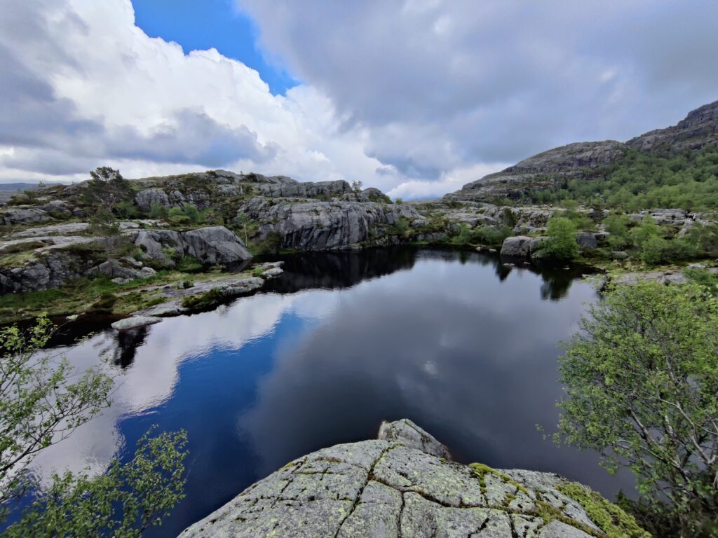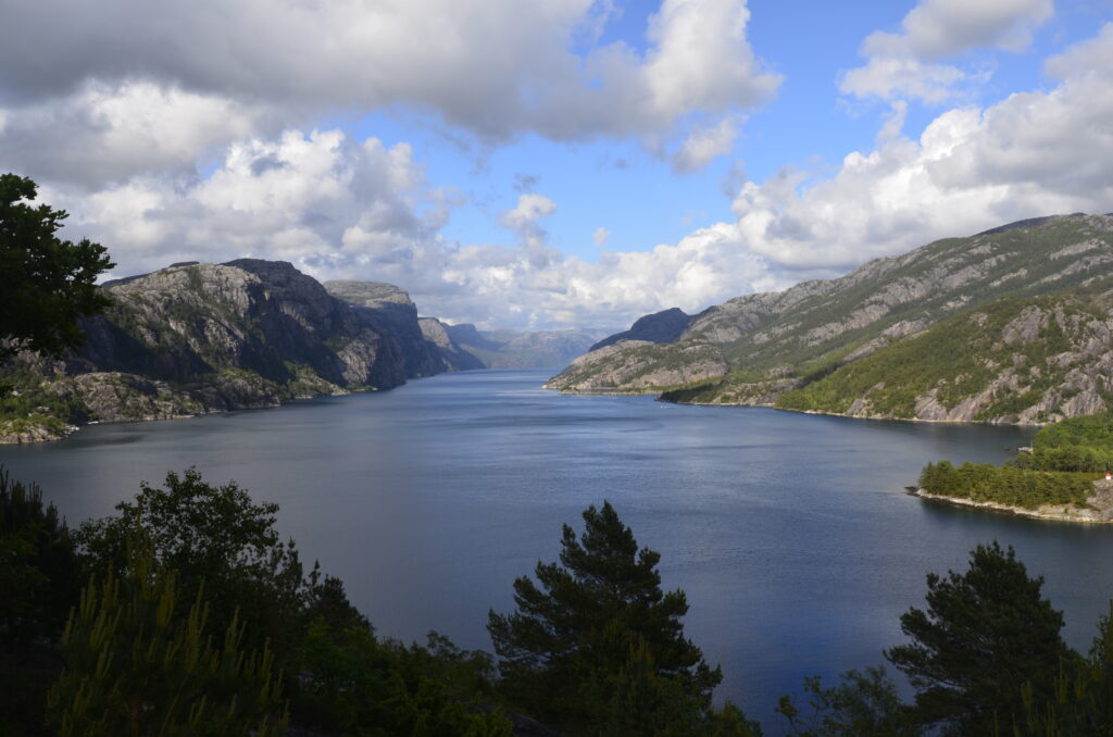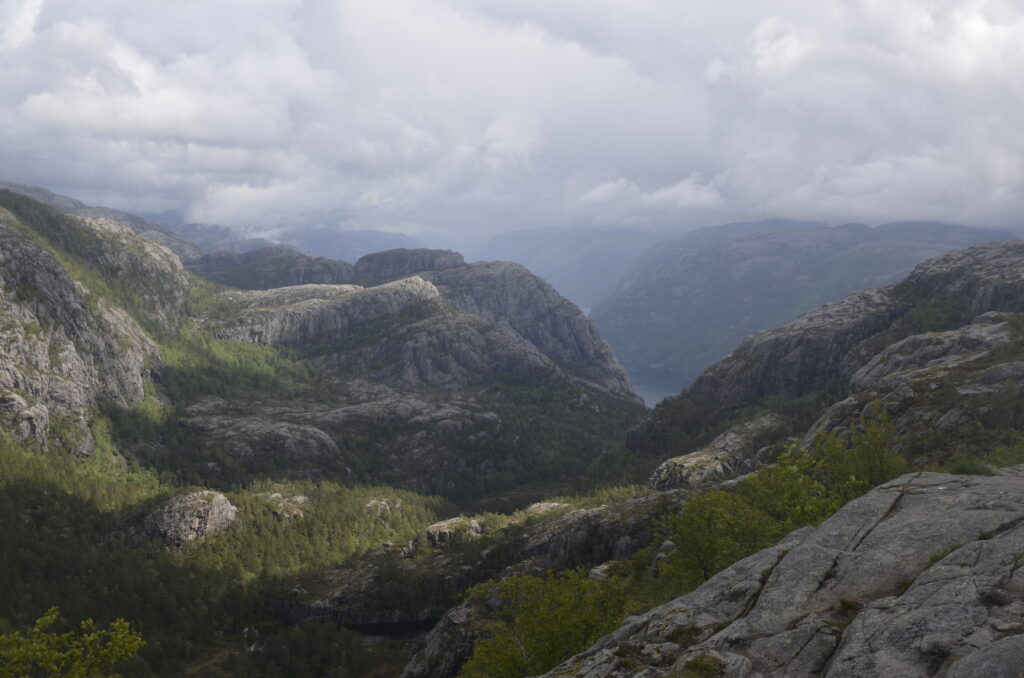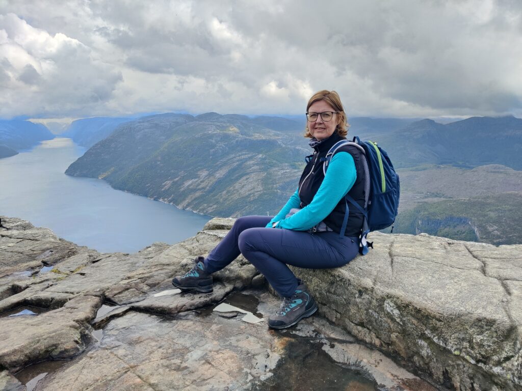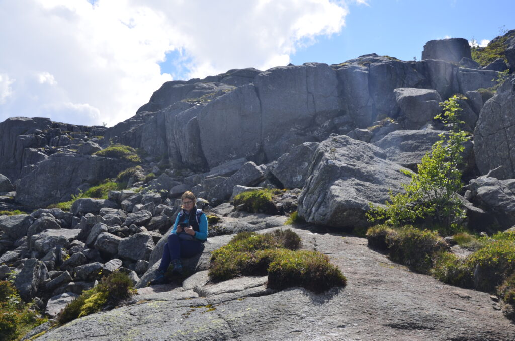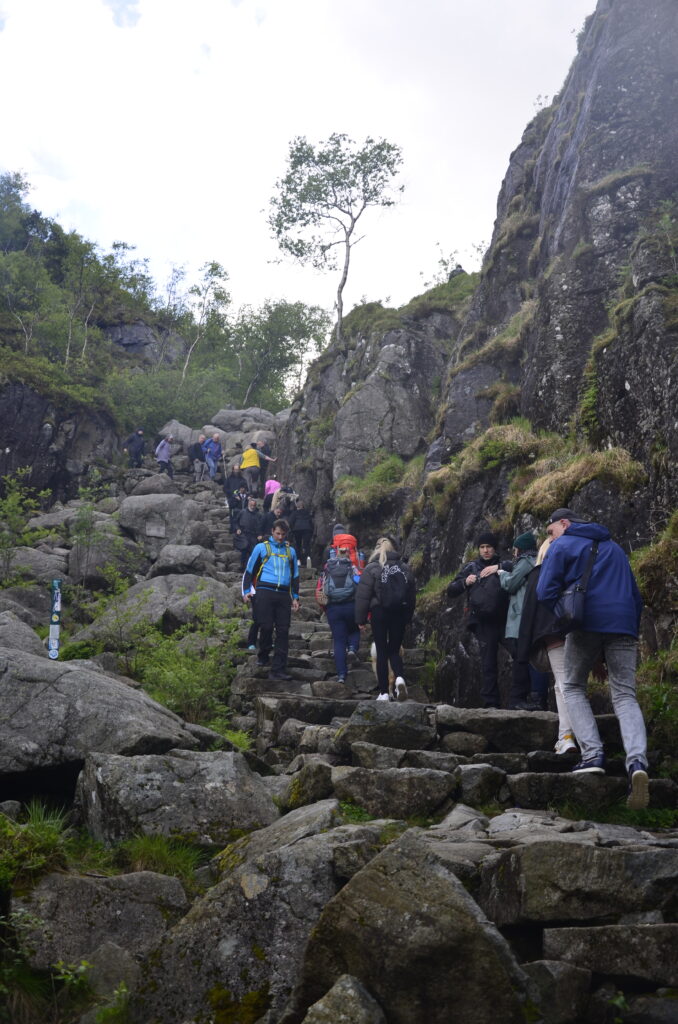 Heute war ein perfekter Tag! Wir wurden vom Regen verschont, die Sonne verwöhnte uns mit ihren warmen Strahlen und ich habe das kritisierte Reisemanagement verbessert: Gisi bekam am Abend eine warme Mahlzeit! Doch von Anfang an. Nach einem guten Frühstück überlegten wir uns, wann denn die beste Zeit für die Wanderung auf den Preikestolen sei. Die Wetterberichte führten uns in die Irre, überall stand etwas anderes. Am Vormittag war der Himmel noch bedeckt und es sah nach Regen aus, spärliche Sonnenfetzen lockerten das Ganze aber auf. Wir beschlossen, noch etwas zuzuwarten und machten einen kleinen Spaziergang in das Zentrum von Jorpeland, einer Kleinstadt mit rund 8.000 Einwohnern und am Idsefjord gelegen. Der weitaus bekanntere und wunderschöne Lysefjord liegt südöstlich der Stadt. Nach einigem Hin und Her machten wir uns dann doch auf den Weg und das war gut so. Wir hätten es nicht besser treffen können. Doch der Reihe nach. Der Preikestolen (was soviel wie Predigtstuhl bedeutet) ist eine natürliche Felsplattform (25 mal 25 Meter) und fällt rund 600 Meter senkrecht in den rund 40 Kilometer langen Lysefjord. Der Weg dorthin ist im wahrsten Sinne des Wortes steinig und hat eine Länge von etwas mehr als vier Kilometer. Dabei sind 500 Höhenmeter zu überwinden. Man ist durchgehend auf mehr oder weniger großen Steinquadern und -stufen unterwegs, die von nepalesischen Sherpas erbaut worden sind. Aufgrund der Regenfälle der letzten Tage herrscht Rutschgefahr und man muss aufpassen, wohin man steigt. Dazu kommen noch die anderen „Trolle“, die auch dieses Ziel vor Augen hatten: Große und Kleine, Dicke und Dünne, Alte und Junge, Hübsche und Perchten, Trainierte und Untrainierte, Vorbereitete und Unvorbereitete! Bei einigen war wir felsenfest davon überzeugt, dass sie gleich nach der ersten Stufe auseinanderbrechen! Die hohe Anzahl von Touristen wird auch von Naturschützern sehr kritisch gesehen. Aber wie dem auch sei, es gibt keinen Eignungstest und die Natur steht jedem offen. Wir haben jedenfalls nicht ganz drei Stunden für den Aufstieg gebraucht. Waren zu dieser Zeit noch Wolken und bedeckter Himmel unsere Begleiter, wurden wir am Ziel mit Sonnenschein empfangen, der bis in die späten Abendstunden anhalten sollte. Und was sollen wir sagen: Der Preikestolen ist atemberaubend, spektakulär, ein Erlebnis! Das hat auch Tom Cruise erkannt und hier Szenen für „Mission Impossible“ gedreht. Es geht wirklich senkrecht hinunter in den Fjord. Ich habe es nicht so mit der Höhe und bin auf Respektabstand zur Felskante gegangen. Einige offensichtliche Lebensmüde haben es sich auf dieser gemütlich gemacht und die Füße munter baumelnd in den Abgrund gestreckt. Man hat einen beeindruckenden Ausblick auf den Fjord und kann von hier oben auch die Fährschiffe erkennen, die mit ihren Schrauben weiße Linien in den Fjord zeichnen. Es bilden sich Menschenschlangen für das beste Fotomotiv: Ganz nahe an der Kante mit dem Lysefjord im Hintergrund. Wir sind dann noch ein ganzes Stück weiter den Berg hochgeklettert und haben abseits der Trollwanderung in Ruhe die warmen Sonnenstrahlen genossen. Aber wenn man oben ist, muss man auch wieder runter. Der rund zweistündige Abstieg hat uns noch einmal extrem gefordert. Die vielen Steinstufen machen einen einfach mit der Zeit kaputt. Wir waren beide am Ende ziemlich geschlaucht, werden diesen Felsen aber mit Sicherheit nicht so schnell vergessen. Morgen geht die Fahrt weiter Richtung Norden. Vi sees i morgen, våre lojale følgesvenner!