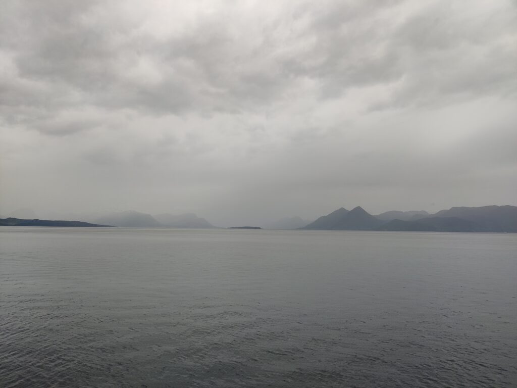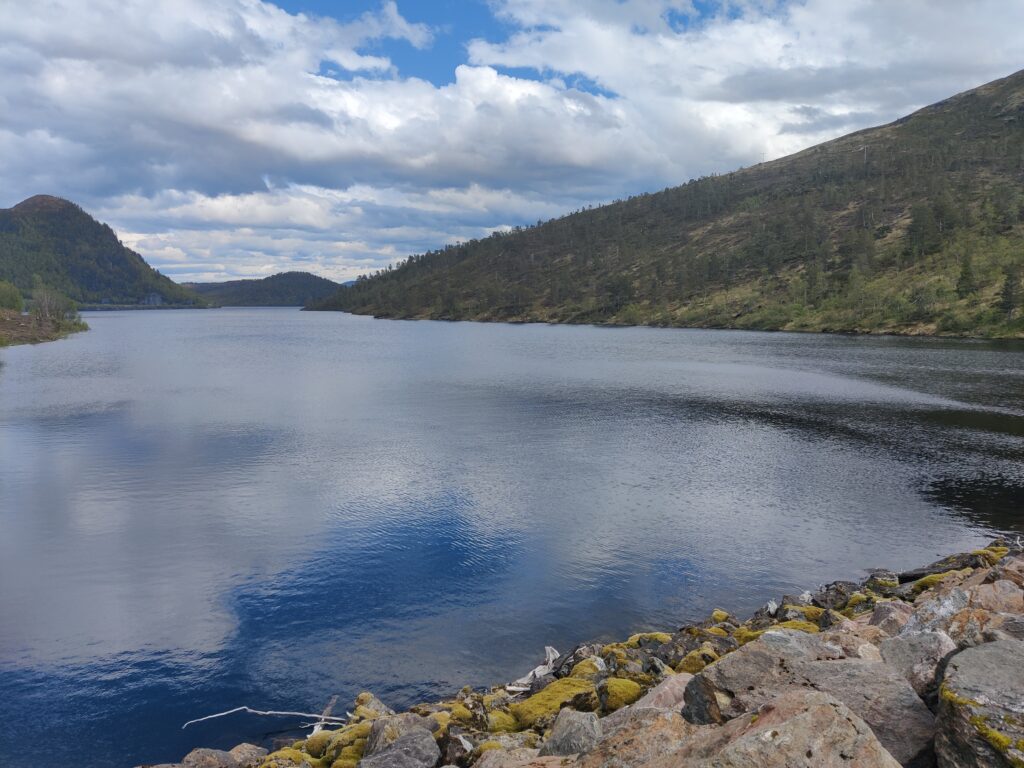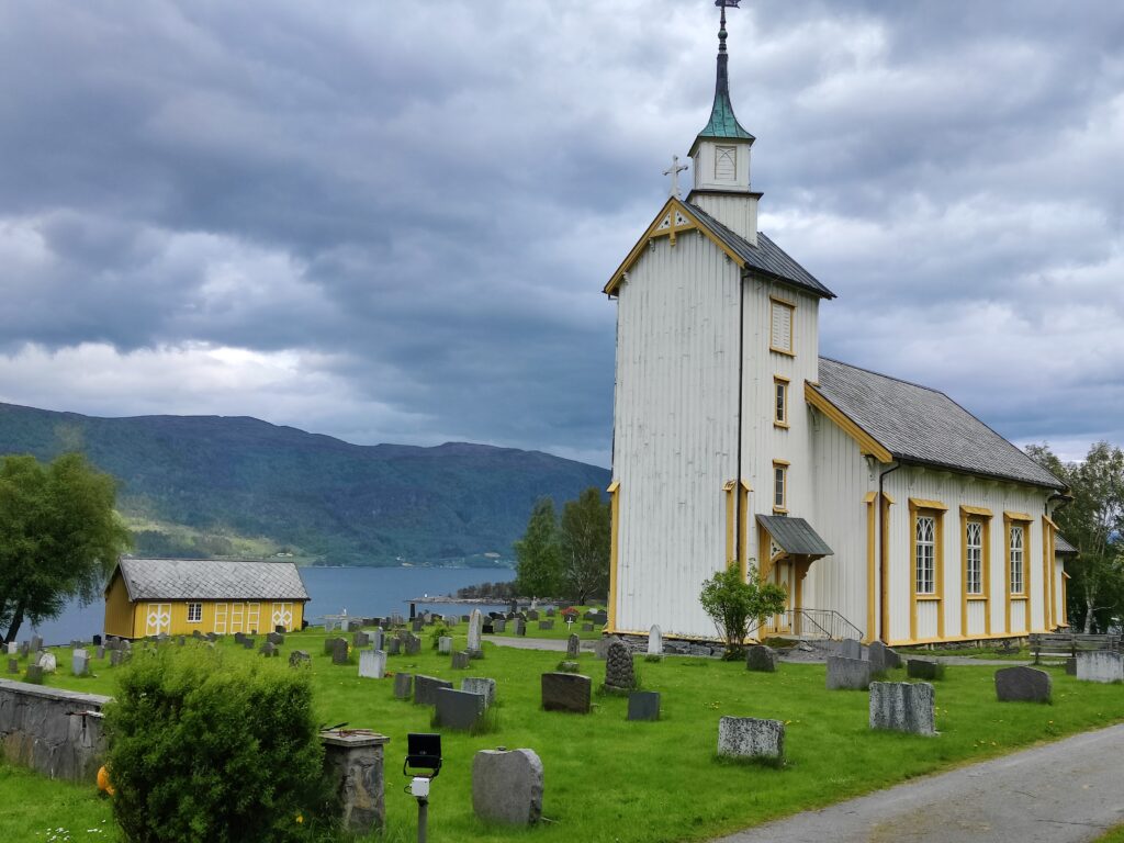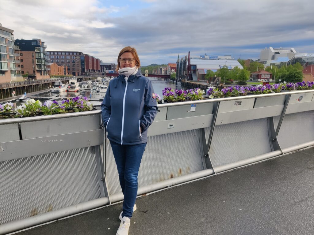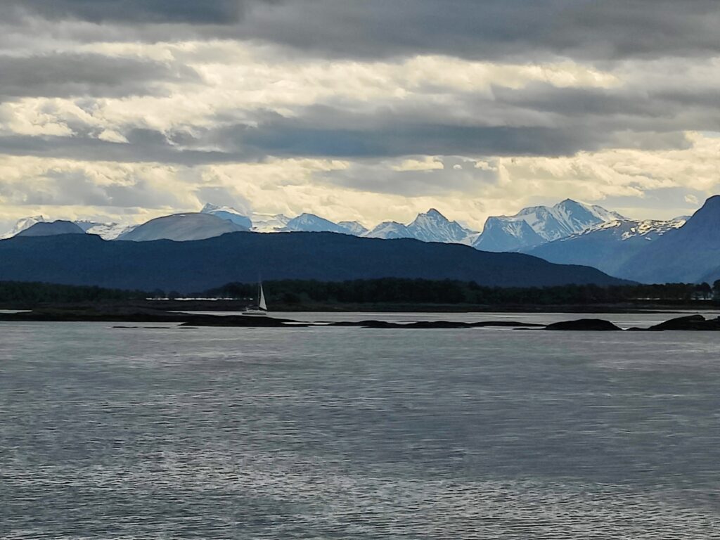 ist in der Stadt Trondheim zu sehen. Und diese Stadt (mit rund 216.000 Einwohnern die drittgrößte Kommune Norwegens), am Fluß Nidelva gelegen, war unser heutiges Tagesziel. Wir haben unser Hotel in Alesund bei bedecktem Himmel verlassen und machten uns auf die Reise. Rund 300 Kilometer galt es zu bewältigen. Das klingt nicht viel, aber die Fahrzeit beträgt rund 5,5 Stunden. Die Fahrt war unspektakulär und die Landschaft veränderte sich währenddessen, wurde zusehends flacher und erinnerte uns an zu Hause. Wir überqueren mit Fähren manch schöne Schären (Entschuldigung für das Wortspiel) und haben in einem unscheinbaren Restaurant eines Campingplatzes ein sehr schmackhaftes Essen eingenommen. Gecampt wird in Norwegen ohnehin an allen nur erdenklichen Plätzen und diese sind auch gut besucht. Das Wetter konnte sich nicht entscheiden, kaum Sonne und immer wieder Regenschauer. Aber das saure Häppchen kam erst. In Trondheim angekommen haben wir unser Quartier bezogen, hinter dem Dom gelegen und im Stil eines ehemaligen Kriegslazarettes. „So eine Tschumsen!“ waren die ersten Worte meines Schatzes. Ich fand es nicht so schlimm, bin aber in diesen Dingen kein wirklicher Maßstab. Na gut, die Aufputzkabel und -leitungen sind vielleicht wirklich nicht mehr State of the Art und die Einrichtung erinnerte an einen Flohmarkt. Aber im Badezimmer gab es einen modernen Abzieher, um die Überschwemmung nach dem Duschen so gering wie möglich zu halten. Wir machten trotz dunkelster Regenwolken noch einen kleinen Stadtrundgang und wie auf Kommando begann es auch aus Kübeln zu schütten. Den Menschen hier ist das aber egal. Es wird gejoggt, Rad gefahren und im strömenden Regen geplaudert. Dicke Kleidung? Fehlanzeige! Wir verdrückten uns in ein nettes Lokal und warteten das Gewitter ab. Nachdem der Regen nachgelassen hatte, setzten wir unseren Rundgang fort. Die Stadt hat allerdings keinen Charme und hat uns nicht gefallen. Morgen steht uns noch einmal eine längere Fahrt bevor. Es geht weiter Richtung Norden nach Mo i Rana, wahrscheinlich über den Kystriksveien, einer spektakulären Küstenstraße an der Atlantikküste. Men la oss se i morgen!