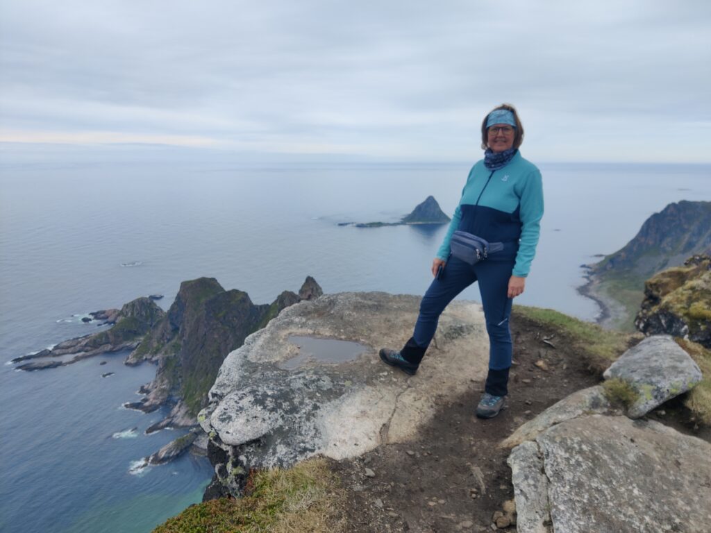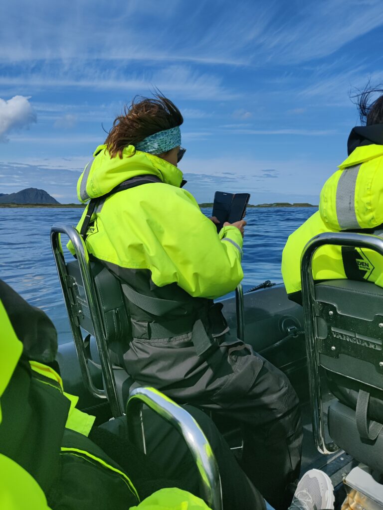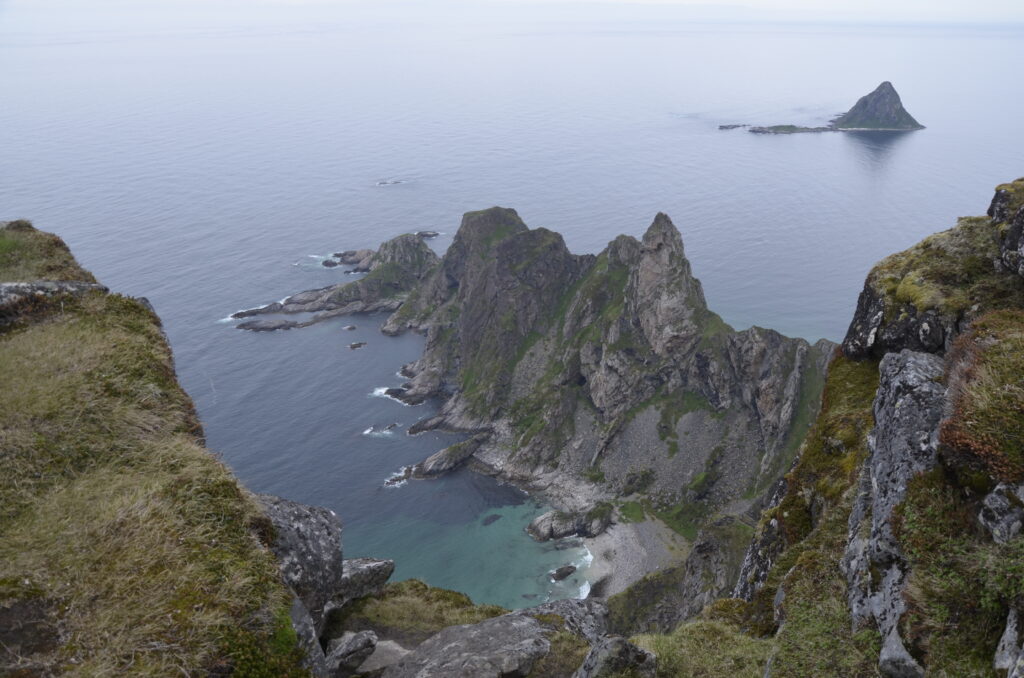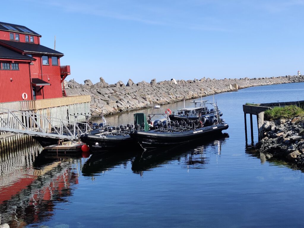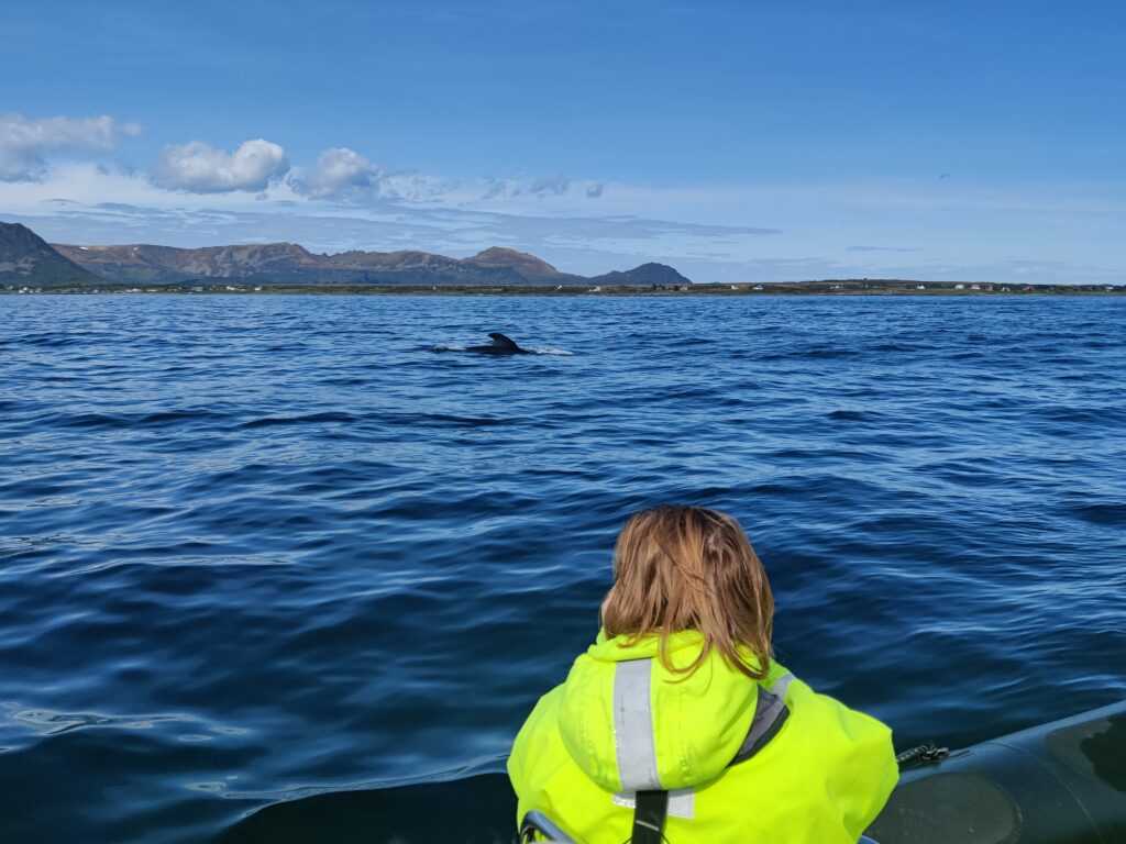 Mit dem heutigen Tag geht sozusagen der Aktivteil unserer dreiwöchigen Norwegenreise zu Ende. Eine Walsafari stand auf dem Programm und dafür sind die Vesteralen die wohl beste Region. Und eines gleich vorweg: Wir haben welche gesehen! Doch der Reihe nach. Erst galt es ein Frühstück zu organisieren, was hier – noch dazu am Wochenende – gar nicht so einfach ist. Wir mussten um 09:15 vor Ort sein, um für die Tour einzuchecken, die Cafes sperren (wenn überhaupt) meist erst später auf. Eine Unterkunft ohne Frühstück zu buchen brachte mich ohnehin in hochgradigen Erklärungsnotstand. Denn ohne Frühstück rührt sich mein Schatz keinen Millimeter. Egal, wir haben eine Kleinigkeit gefunden und waren pünktlich zur Stelle. Wir wurden von unserem Guide eingewiesen und mit einem dicken Overall und Sicherheitsweste ausgestattet. Wie Tinky-Winky und Laa-Laa von den Teletubbies watschelten wir im Gänsemarsch zum RIB, einem großen Schlauchboot mit festem Rumpf und hoher Leistung. Und spätestens als wir den Hafen verlassen haben, haben wir die Power dieses Bootes gespürt. Wir preschten über die Wellen, als gäbe es kein morgen und verloren stellenweise den Kontakt zum Wasser. Der Andfjord bei der Bucht von Andenes war zu dieser Tageszeit sehr ruhig, der Himmel strahlend blau und die Sonne schickte ihre warmen Strahlen an die Oberfläche. Hoch oben am Himmel zog ein Seeadler seine Kreise. Nach ungefähr einer halben Stunde bekamen wir Orcas zu Gesicht, eine Mutter mit ihren Jungen, hochsoziale und intelligente Wesen, die in Familienverbänden leben und über hervorragende Jagdtechniken verfügen. Wir blieben, so gut es ging in ihrer Nähe, was gar nicht so einfach war. Ausgestattet mit einem Hydrophone können diese Tiere relativ gut geortet werden. Und zwölf auf die See gerichtete Augenpaare halfen auch noch mit. Unser Kapitän führte uns dann noch zu einer Gruppe von Grindwalen mit ihren hakenförmigen Rückenflossen, die durch den Fjord streiften und ohne Scheu relativ dicht an unserem Boot vorbeizogen. Nach unserer Rückkehr gab es noch ein richtiges Frühstück. Die Sonne verabschiedete sich wieder vorzeitig, aber es blieb trocken und wir machten uns auf zum Matind, einem der meist besuchten Berge auf den Vesteralen. Lediglich 408 Meter hoch, geht es von Beginn an über Stock und Stein sehr steil und knackig nach oben, weiter über ein riesiges felsiges Hochplateau und zu Guter Letzt einmal noch steil hinauf zum Gipfel. Orientieren kann man sich in den norwegischen Bergen hauptsächlich an Steinmännchen oder roten, oft aber schwer erkennbaren Markierungen. Oben angekommen bieten sich sensationelle Ausblicke auf die Küste Richtung Bleik, auf das offene Meer und die einsame Bucht Høyvika. Der Abstieg war ob des vielen Gerölls sehr fordernd und wir sind nach rund 4,5 Stunden wieder am Ausgangspunkt gelandet. Ein würdiger Abschluss unserer Wanderaktivitäten! Vorbereitungen für die morgen beginnende dreitägige Schifffahrt mit Hurtigruten von Svolvaer, der Hauptstadt der Lofoten, südwärts in Richtung Bergen füllten den restlichen Abend. Wir sind schon sehr gespannt, was uns erwartet. Postskip Ahoy!