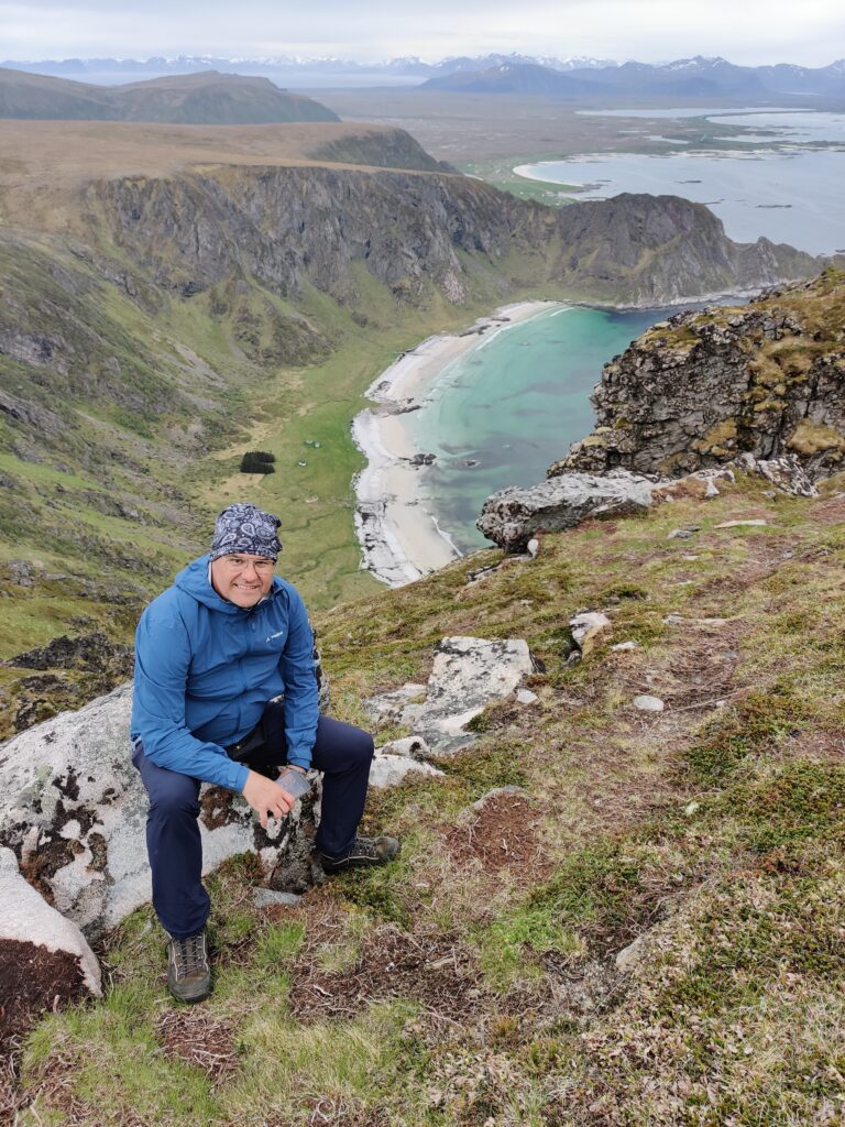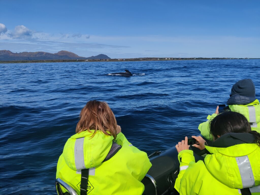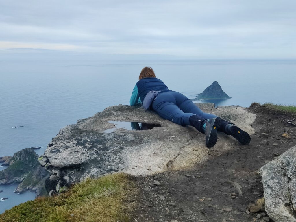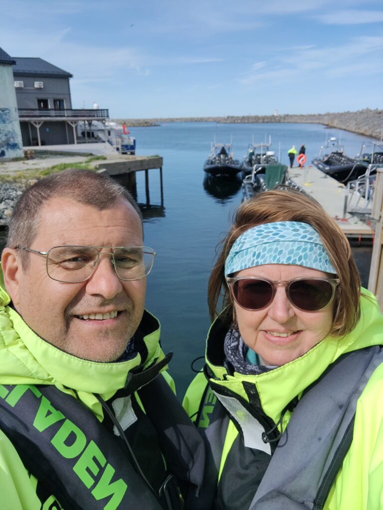 Mit dem heutigen Tag geht sozusagen der Aktivteil unserer dreiwöchigen Norwegenreise zu Ende. Eine Walsafari stand auf dem Programm und dafür sind die Vesteralen die wohl beste Region. Und eines gleich vorweg: Wir haben welche gesehen! Doch der Reihe nach. Erst galt es ein Frühstück zu organisieren, was hier – noch dazu am Wochenende – gar nicht so einfach ist. Wir mussten um 09:15 vor Ort sein, um für die Tour einzuchecken, die Cafes sperren (wenn überhaupt) meist erst später auf. Eine Unterkunft ohne Frühstück zu buchen brachte mich ohnehin in hochgradigen Erklärungsnotstand. Denn ohne Frühstück rührt sich mein Schatz keinen Millimeter. Egal, wir haben eine Kleinigkeit gefunden und waren pünktlich zur Stelle. Wir wurden von unserem Guide eingewiesen und mit einem dicken Overall und Sicherheitsweste ausgestattet. Wie Tinky-Winky und Laa-Laa von den Teletubbies watschelten wir im Gänsemarsch zum RIB, einem großen Schlauchboot mit festem Rumpf und hoher Leistung. Und spätestens als wir den Hafen verlassen haben, haben wir die Power dieses Bootes gespürt. Wir preschten über die Wellen, als gäbe es kein morgen und verloren stellenweise den Kontakt zum Wasser. Der Andfjord bei der Bucht von Andenes war zu dieser Tageszeit sehr ruhig, der Himmel strahlend blau und die Sonne schickte ihre warmen Strahlen an die Oberfläche. Hoch oben am Himmel zog ein Seeadler seine Kreise. Nach ungefähr einer halben Stunde bekamen wir Orcas zu Gesicht, eine Mutter mit ihren Jungen, hochsoziale und intelligente Wesen, die in Familienverbänden leben und über hervorragende Jagdtechniken verfügen. Wir blieben, so gut es ging in ihrer Nähe, was gar nicht so einfach war. Ausgestattet mit einem Hydrophone können diese Tiere relativ gut geortet werden. Und zwölf auf die See gerichtete Augenpaare halfen auch noch mit. Unser Kapitän führte uns dann noch zu einer Gruppe von Grindwalen mit ihren hakenförmigen Rückenflossen, die durch den Fjord streiften und ohne Scheu relativ dicht an unserem Boot vorbeizogen. Nach unserer Rückkehr gab es noch ein richtiges Frühstück. Die Sonne verabschiedete sich wieder vorzeitig, aber es blieb trocken und wir machten uns auf zum Matind, einem der meist besuchten Berge auf den Vesteralen. Lediglich 408 Meter hoch, geht es von Beginn an über Stock und Stein sehr steil und knackig nach oben, weiter über ein riesiges felsiges Hochplateau und zu Guter Letzt einmal noch steil hinauf zum Gipfel. Orientieren kann man sich in den norwegischen Bergen hauptsächlich an Steinmännchen oder roten, oft aber schwer erkennbaren Markierungen. Oben angekommen bieten sich sensationelle Ausblicke auf die Küste Richtung Bleik, auf das offene Meer und die einsame Bucht Høyvika. Der Abstieg war ob des vielen Gerölls sehr fordernd und wir sind nach rund 4,5 Stunden wieder am Ausgangspunkt gelandet. Ein würdiger Abschluss unserer Wanderaktivitäten! Vorbereitungen für die morgen beginnende dreitägige Schifffahrt mit Hurtigruten von Svolvaer, der Hauptstadt der Lofoten, südwärts in Richtung Bergen füllten den restlichen Abend. Wir sind schon sehr gespannt, was uns erwartet. Postskip Ahoy!